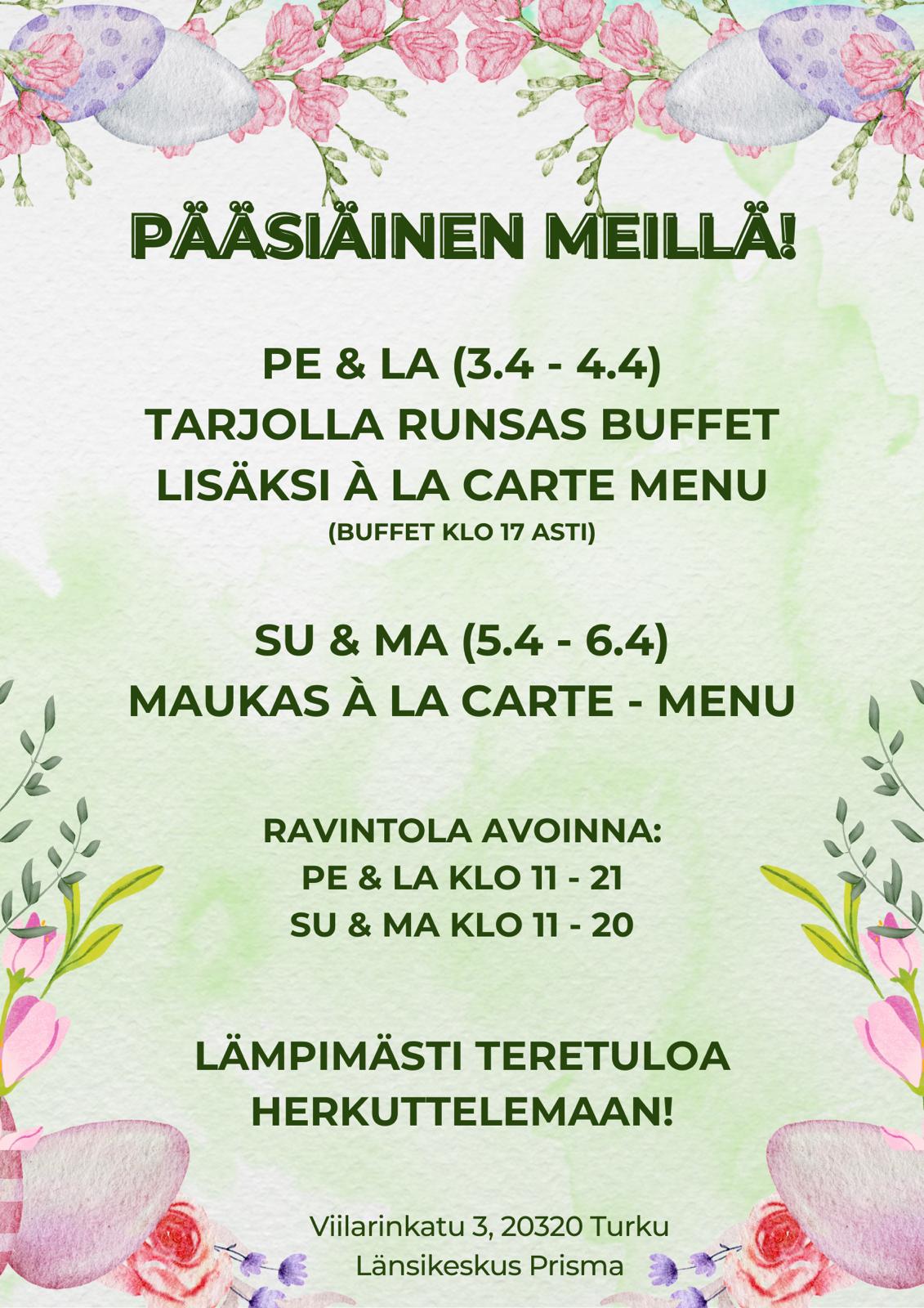 Lauantaina löytyy myös monipuolinen buffet.